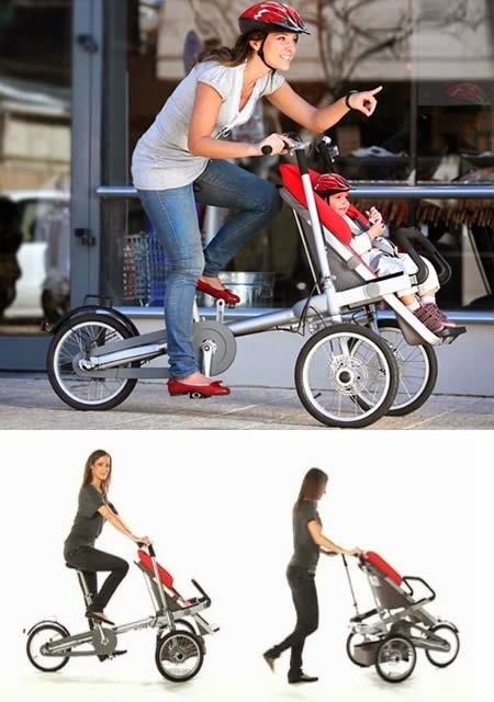 15 - Um carrinho de passeio que se adapta a uma bicicleta, e permite passeios muito divertidos em família.