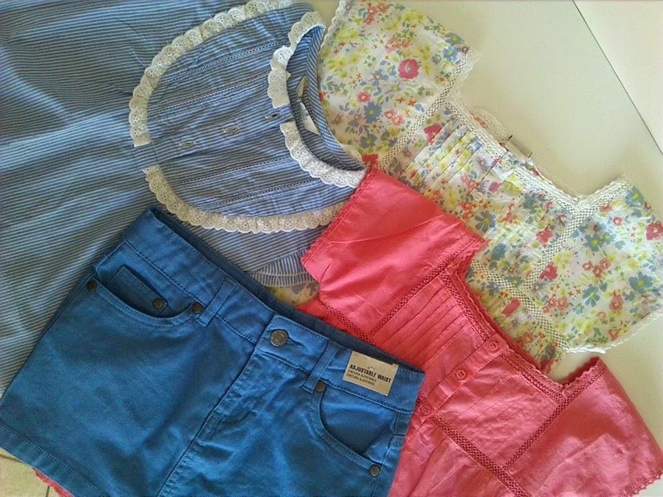 Compras desta tarde: pijamas, camisas de dormir, túnicas, calções, saias e fato de banho para ela; dois pijamas e uns calções para ele. O total acabou por ser parecido ao que gasto habitualmente em duas ou três peças.
