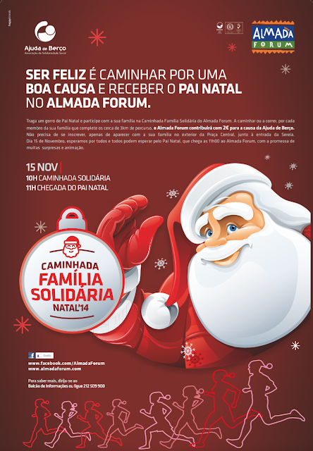 Todos os anos a chegada do Pai Natal é um momento de grande fascínio e magia para as crianças. Mesmo antes do dia 25 de Dezembro, os mais novos anseiam uma visita ao centro comercial para poderem tirar uma fotografia e entregar a sua lista de presentes ao Pai Natal. Mas porque o Natal é muito mais do que presentes, o Almada Forum preparou a chegada do homem das barbas de uma forma diferente, que irá envolver famílias, amigos, desporto e solidariedade. No dia 15 de Novembro o Almada Forum promove uma caminhada solidária que tem como objectivo celebrar a chegada do Pai Natal e apoiar a Ajuda de Berço.